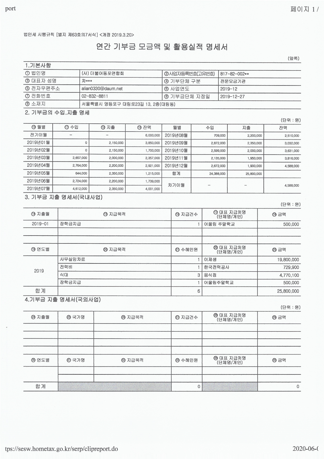 2019년 기부금 내역서 페이지 정보 작성자 관리자 댓글 0건 조회 1,121회 작성일 20-06-05 16:54 본문 목록 이전글2020년 연간 기부금 모금 및 활용실적 명세서 21.07.02 다음글물품 후원받습니다. 19.03.29 댓글목록 댓글목록 등록된 댓글이 없습니다.